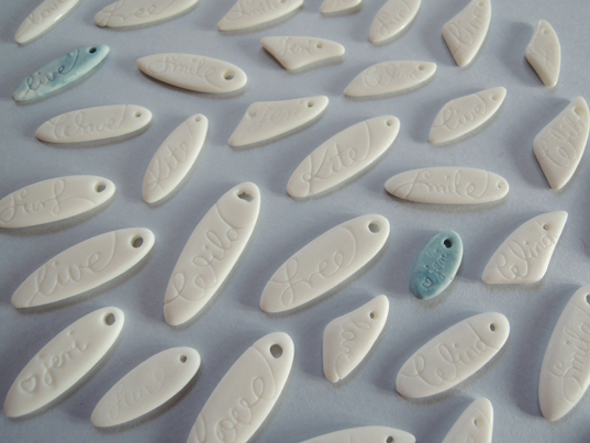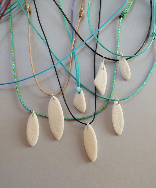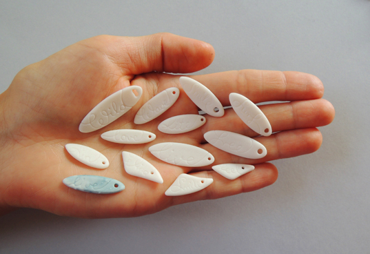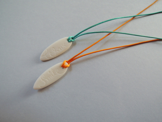 Istnieje możliwość realizacji specjalnych zamówień (kształt, napis) w formie zawieszki na szyję, rękę lub stopę – na regulowanym sznurku w dowolnym kolorze. Możliwa również realizacja porcelanowej broszki albo kolczyków.