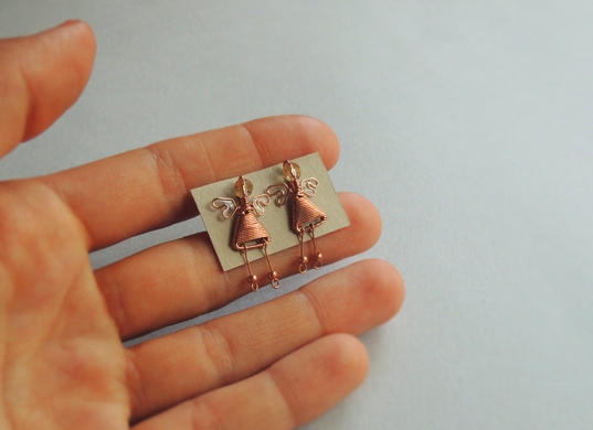 Stud Earrings Little Copper Angels