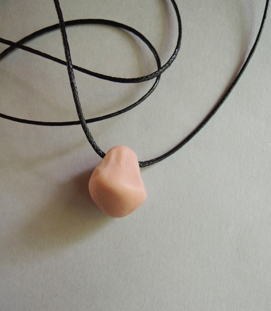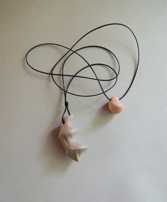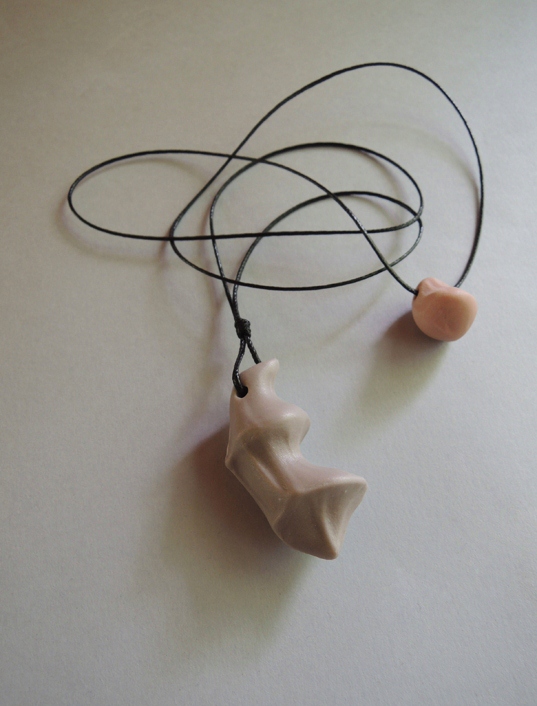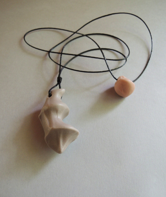 Naszyjnik wykonany został z kompozycji ręcznie wykonanych elementów porcelanowych. Z założenia jest całkowicie niepowtarzalny i unikatowy, kształt największego elementu stanowi odcisk dłoni artysty.