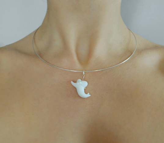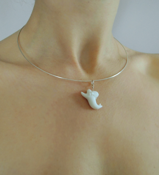 Unikatowa zawieszka na szyję wykonana od podstaw ręcznie z najwyższej jakości śnieżnobiałej porcelany, wypalona w temperaturze 1280 stopni, nieszkliwiona, co nadaje figurce elegancką matową fakturę. Po wypaleniu porcelana staje się bardzo twarda i trwała.