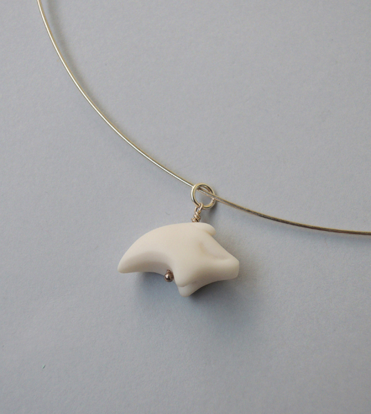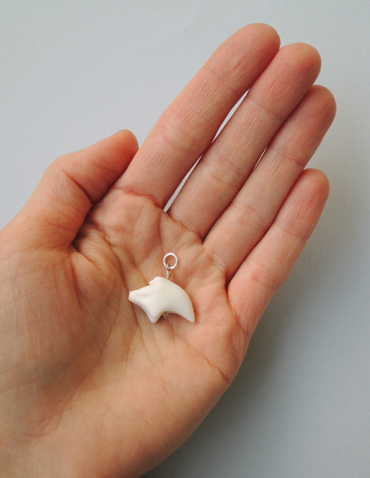 Unikatowa zawieszka na szyję wykonana od podstaw ręcznie z najwyższej jakości śnieżnobiałej porcelany, wypalona w temperaturze 1280 stopni, nieszkliwiona, co nadaje figurce elegancką matową fakturę. Po wypaleniu porcelana staje się bardzo twarda i trwała.