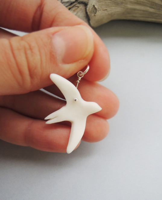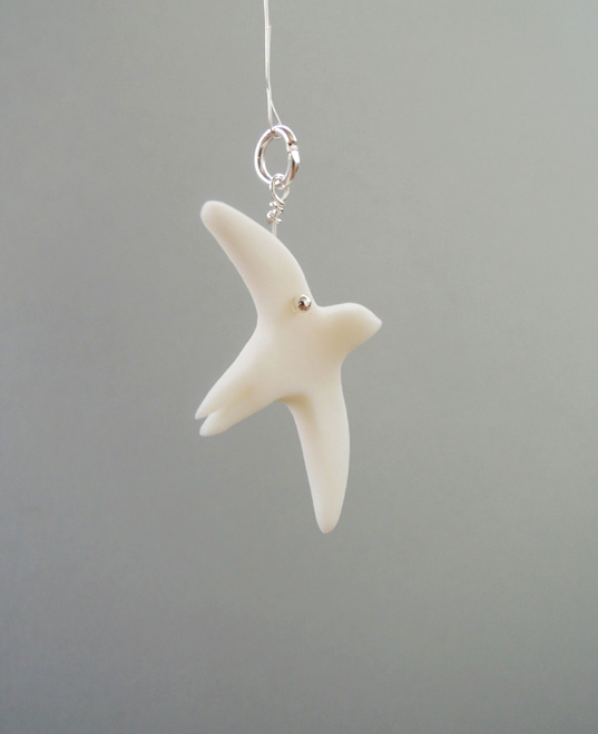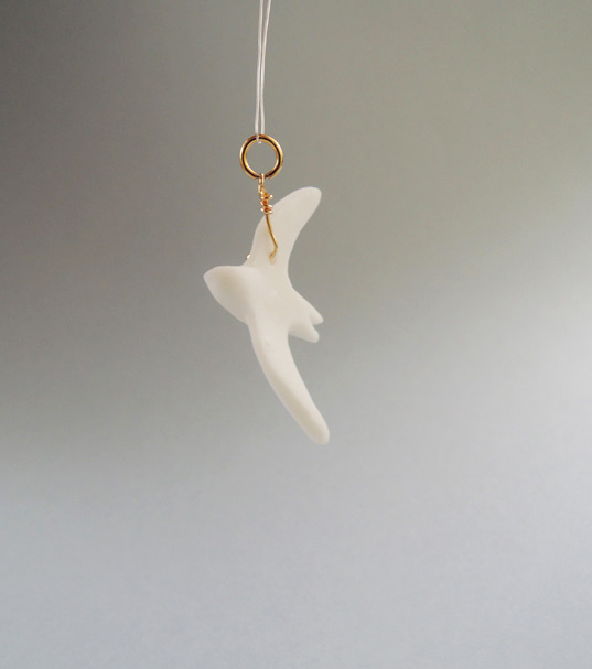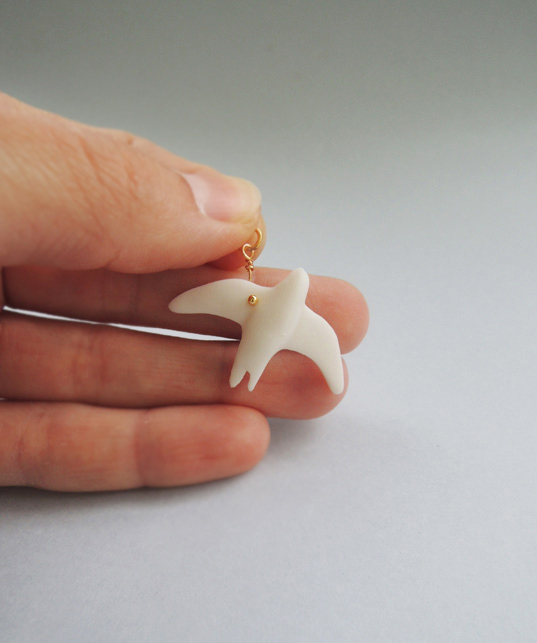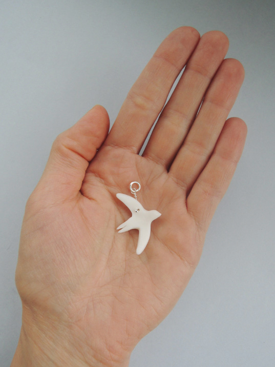 Unikatowa zawieszka na szyję wykonana od podstaw ręcznie z najwyższej jakości śnieżnobiałej porcelany, wypalona w temperaturze 1280 stopni, nieszkliwiona, co nadaje figurce elegancką matową fakturę. Po wypaleniu porcelana staje się bardzo twarda i trwała.