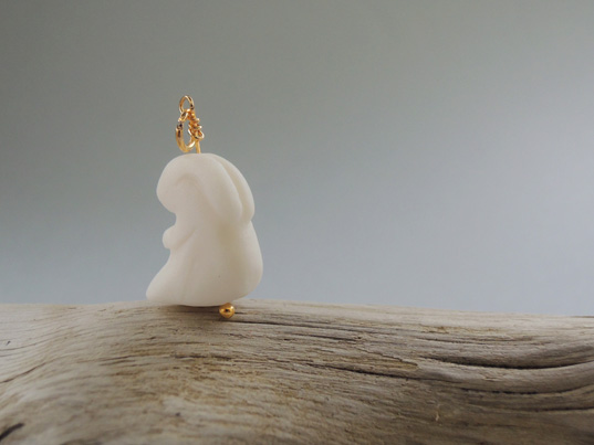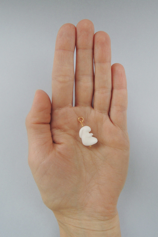 Unikatowa zawieszka na szyję wykonana od podstaw ręcznie z najwyższej jakości śnieżnobiałej porcelany, wypalona w temperaturze 1280 stopni, nieszkliwiona, co nadaje figurce elegancką matową fakturę. Po wypaleniu porcelana staje się bardzo twarda i trwała.