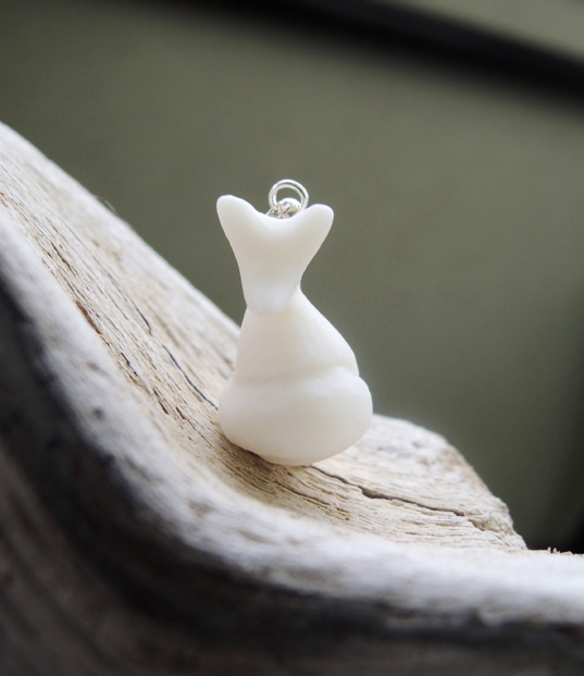 Unikatowa zawieszka na szyję wykonana od podstaw ręcznie z najwyższej jakości śnieżnobiałej porcelany, wypalona w temperaturze 1280 stopni, nieszkliwiona, co nadaje figurce elegancką matową fakturę. Po wypaleniu porcelana staje się bardzo twarda i trwała.