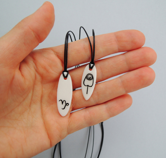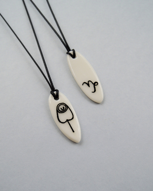 Istnieje możliwość realizacji specjalnych zamówień (kształt, wzór graficzny) w formie zawieszki na szyję, rękę lub stopę – na regulowanym sznurku w dowolnym kolorze. Możliwa również realizacja porcelanowej broszki albo kolczyków.