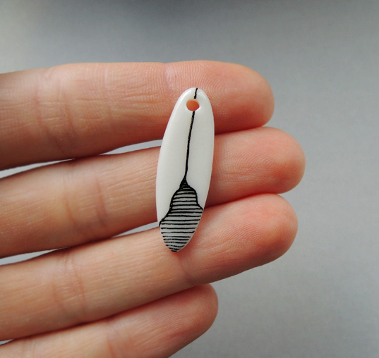 Unikatowa biżuteria wykonana od podstaw ręcznie z najwyższej jakości śnieżnobiałej porcelany, wypalonej w temperaturze 1280 stopni, samoszkliwnej, co nadaje zawieszkom elegancką satynową fakturę. Po wypaleniu porcelana staje się bardzo twarda i trwała. Każda zawieszka malowana ręcznie w unikatowy, trwale zabezpieczony wzór graficzny.