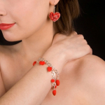 Mój kolega Marek, w ramach swojej pracy licencjackiej, zrealizował niedawno sesję fotograficzną z udziałem moich koleżanek oraz biżuterii, którą zaprojektowałam i wykonałam własnoręcznie; wśród wzorów zaprezentowanych w trakcie sesji znalazły się między innymi: kolczyki koronki czarne w czerwieni, kolczyki flamenco czerwone, kolczyki serca i bransoletka z serduszkami, kolczyki ważki, kolczyki aniołki, kolczyki klatki z sercem, naszyjniki z kamieni naturalnych i srebra autorstwa mojej mamy, Joanny oraz jej siostry, Marii.