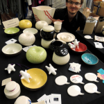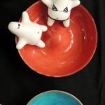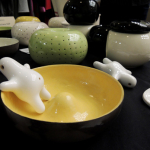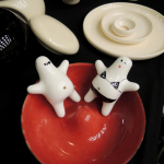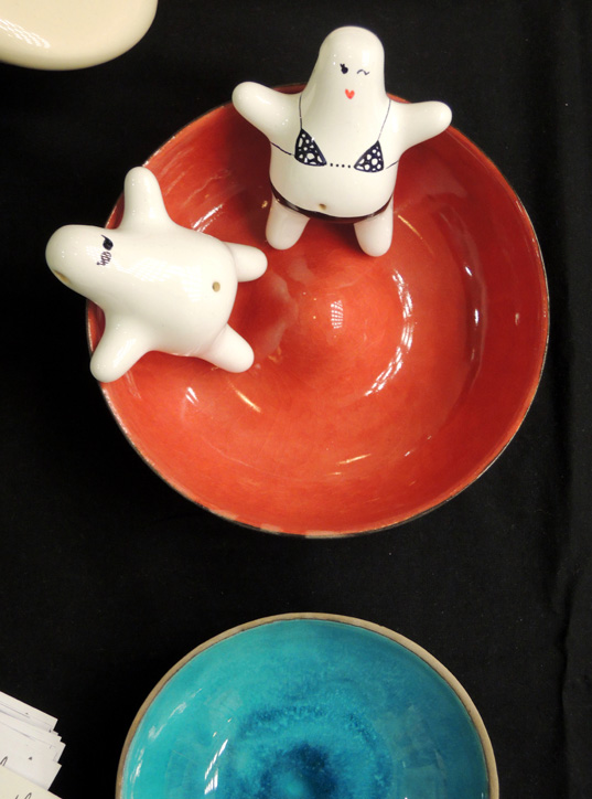 Razem z moim kolegą z grupy, Przemkiem Pomaskim, wzięłam udział w dziewiątej edycji Targów Mustache, które tym razem miały miejsce w Pałacu Kultury i Nauki, w Warszawie. Poniżej możecie zobaczyć ceramiczne lampki i naczynia Przemka, projekty naszej koleżanki Kasi Fijałkowskiej, oraz moje ceramiczne magnesy dymki, stworki mazaki, naczynia z zestawu śniadaniowego należącego do projektu ‘Forma do potęgi trzeciej’ a także moją biżuterię, w tym porcelanową : )
